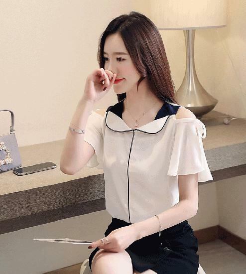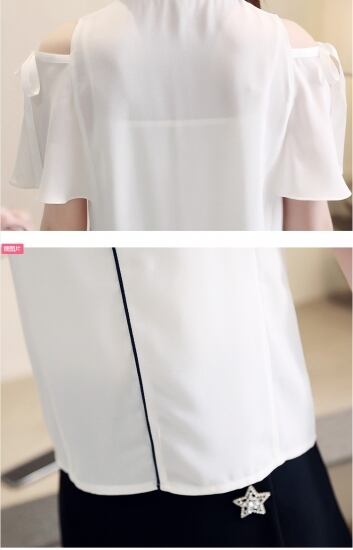 トップス ブラウス シフォン シャツ オフショルダー フレアスリーブ リボン バイカラー 2色 春夏 143028756