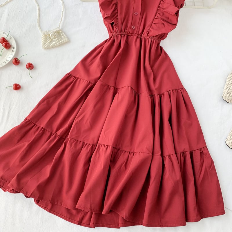 ワンピース レディース Vネック ティアード ロング スカート ノースリーブ リゾート きれいめ 大人 かわいい フリル 胸下切り替え ybh0061