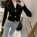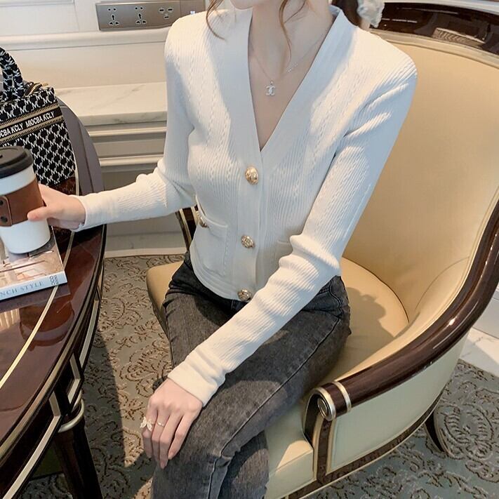 カーディガン レディース トップス 長袖 オフィス 上品 Vネック 飾りボタン リブ 厚手 羽織 ニット ニットソー 大人 きれいめ ybh0135