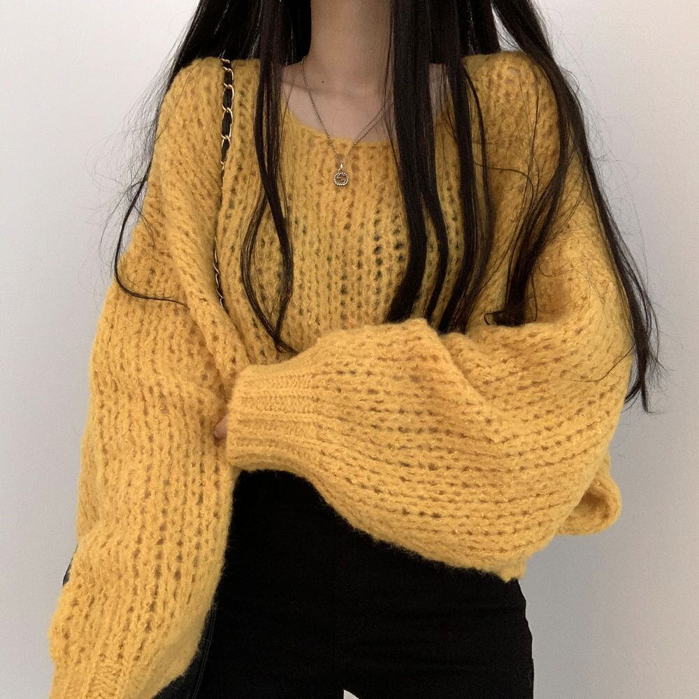 ニット レディース セーター スクエアネック カジュアル ボリュームスリーブ カラバリ ざっくり ybh0396