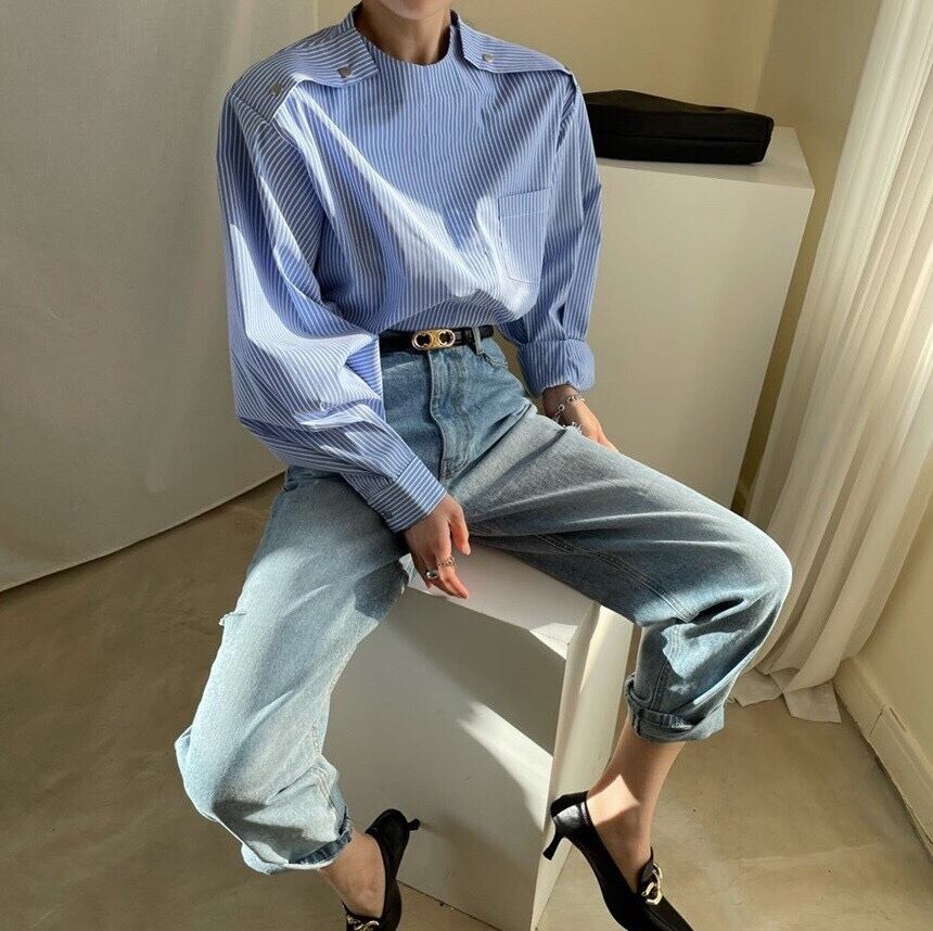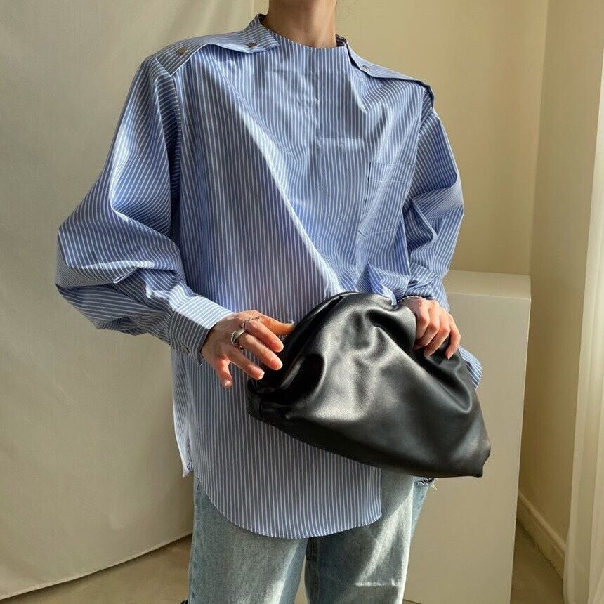 シャツ トップス 長袖 ストライプ ブラウス レディース 変形 シンプル おしゃれ 大人 オフィス カジュアル ybh0404