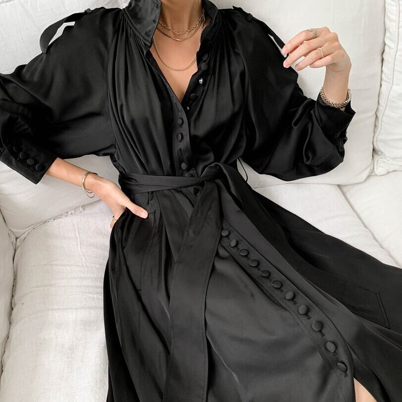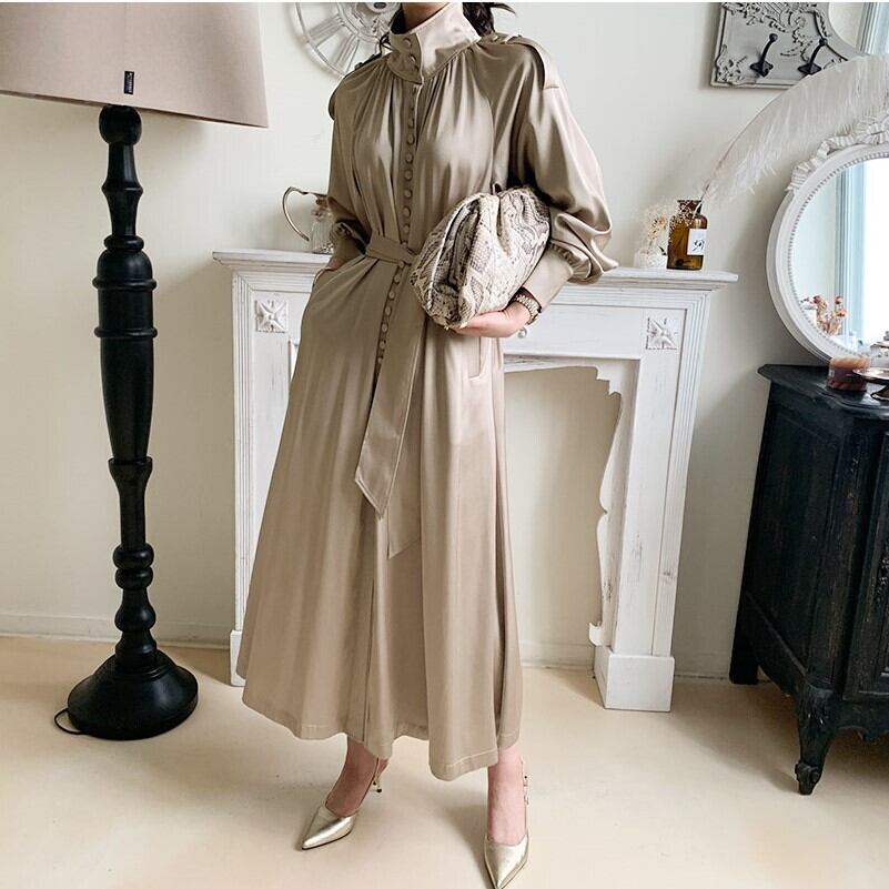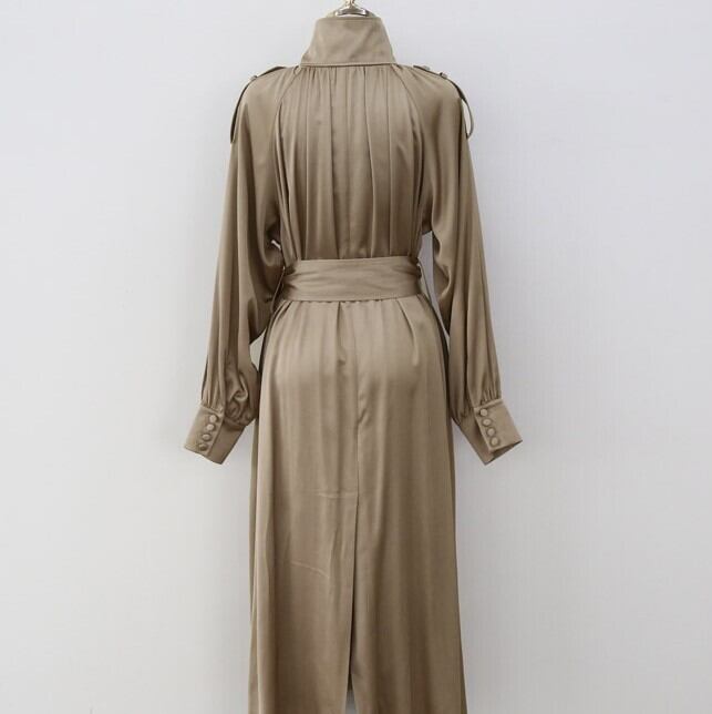 ワンピース レディース ドレス 英国風 レトロ 長袖 ロング スカート リボン付き ウエストマーク 上品 大人 お呼ばれ 無地 ハイネック スタンドカラー ybh0422