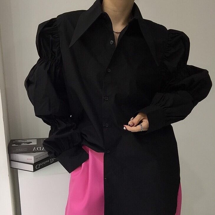 シャツ トップス レディース ビッグ襟 ビックカラー ブラウス ボリュームスリーブ 袖コンシャス 英国風 シンプル ybh0430