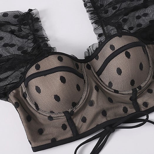 水着 タンキニ 長袖 ドット フリル ブラック 海水浴 プール ybh0766