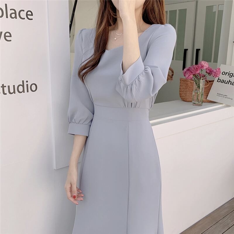 ワンピース ドレス スクエアネック マーメイド 透け感 ミモレ丈 バックリボン 細見え 上品 きれいめ パーティ 二次会 お呼ばれ 大きいサイズ 展開 ybh1044