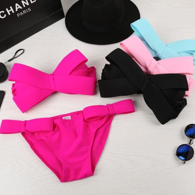水着 ビキニ セパレート レディース リボン かわいい ガーリー シンプル 無地 リゾート ホルターネック 海 大人 カラーバリエーション 夏 ybh1075