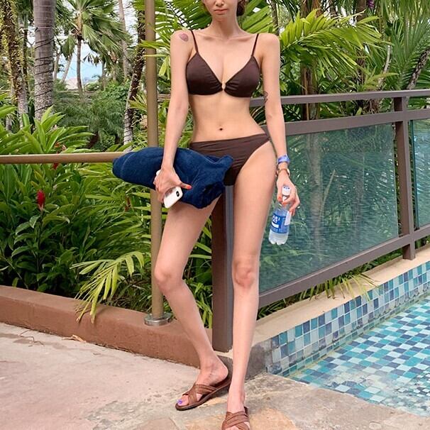 水着 ビキニ レディース 3点セット パレオ付き 体型カバー セクシー バックリボン シンプル 無地 リゾート 大人 スイムウェア ママ ブラウン ブラック ybh1081