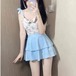 水着 レディース 2 点セット 体型カバー フリル スカート ガーリー 肩リボン ギャザー かわいい お腹カバー クマ柄 プール 夏 バックリボン スイムウェア ybh1097