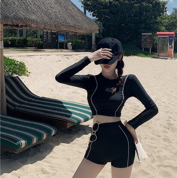 水着 セット レディース スイムウェア ラッシュガード カジュアル シンプル 日焼け対策 体型カバー ママ プール 海 リゾート 長袖 黒 ハイウエスト ybh1155