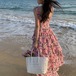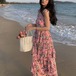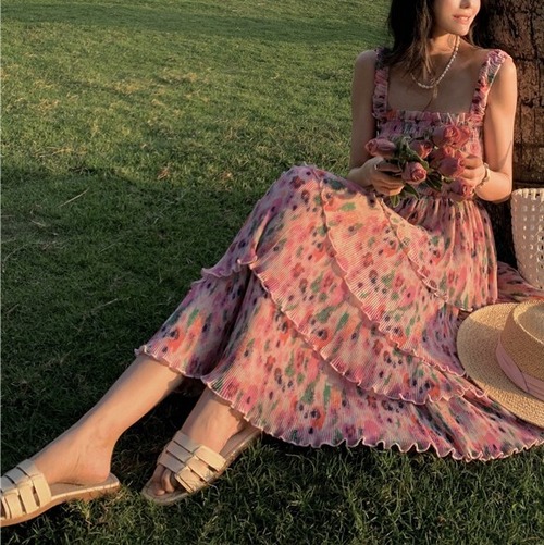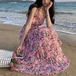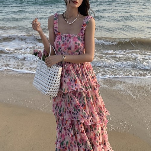 ワンピース ロング フラワー ベアトップ ティアード フリル 花柄 大人 リゾート きれいめ プール 海 ドレス ハイウエスト レディース ybh1199