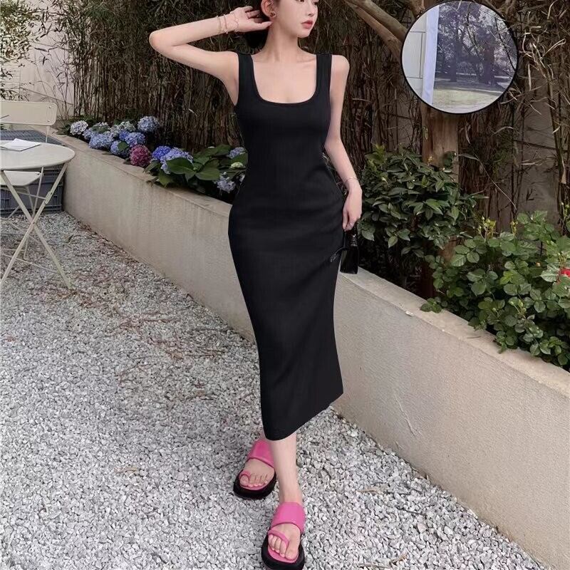 ワンピース ニット タイトスカート ノースリーブ スクエアネック 無地 ロング セクシー カジュアル ペンシル レディース ybh1214