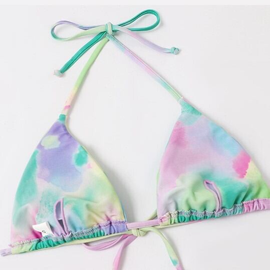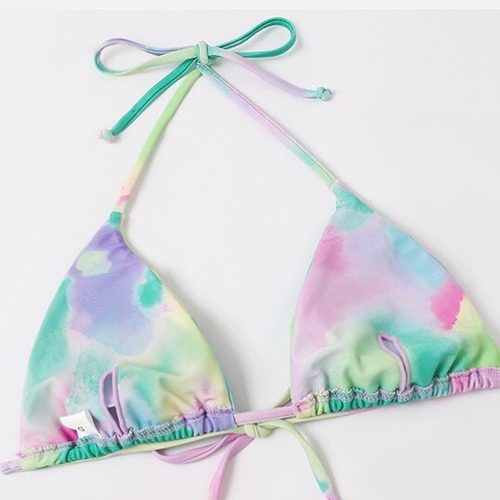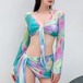 水着 セパレート レディース 4点セット ビキニ 羽織 日焼け対策 体型カバー 総柄 タイダイ カラフル カジュアル 夏 ウエストリボン ホルターネック ybh1225