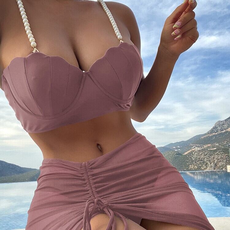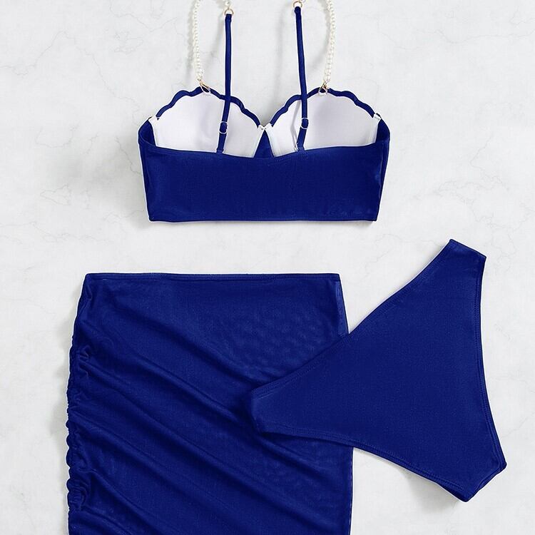 水着 タンキニ セパレート 3点セット スカート付き シェルモチーフ 肩紐パール マーメイド 台形スカート スイムウェア かわいい プール ハイウエスト ybh1237