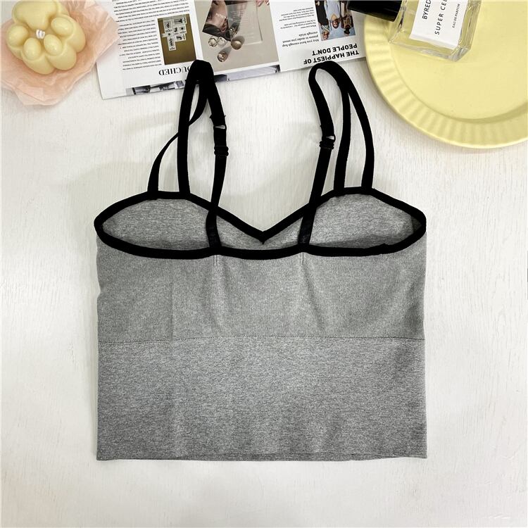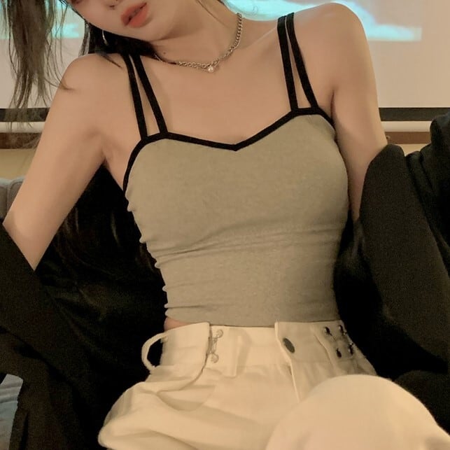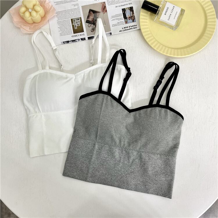 ブラトップ ショート丈 バイカラー キャミソール インナー へそ出し 見せブラ ダブルストラップ カジュアル レディース シンプル ybh1266