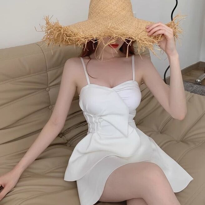 水着 ワンピース レディース ミニスカート スイムウェア フリルスカート 体型カバー 白 かわいい まま プール 無地 シンプル リゾート ybh1310