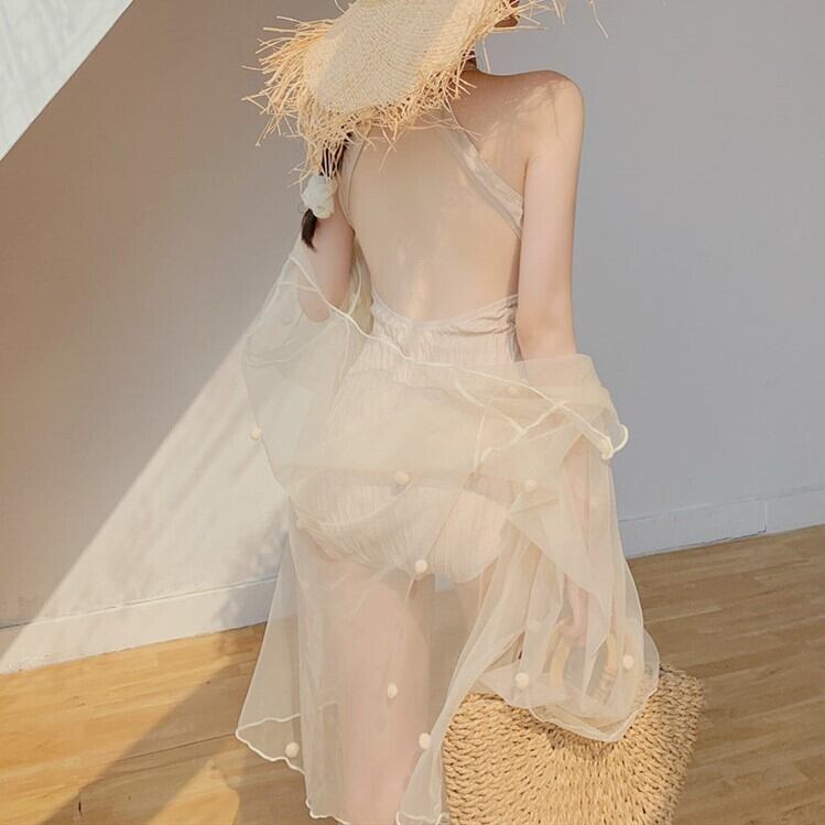 水着 ワンピース レディース スイムウェア ベージュ シアートップス ハイウエスト 体型カバー 日焼け対策 まま リゾート 大人 きれいめ ybh1311