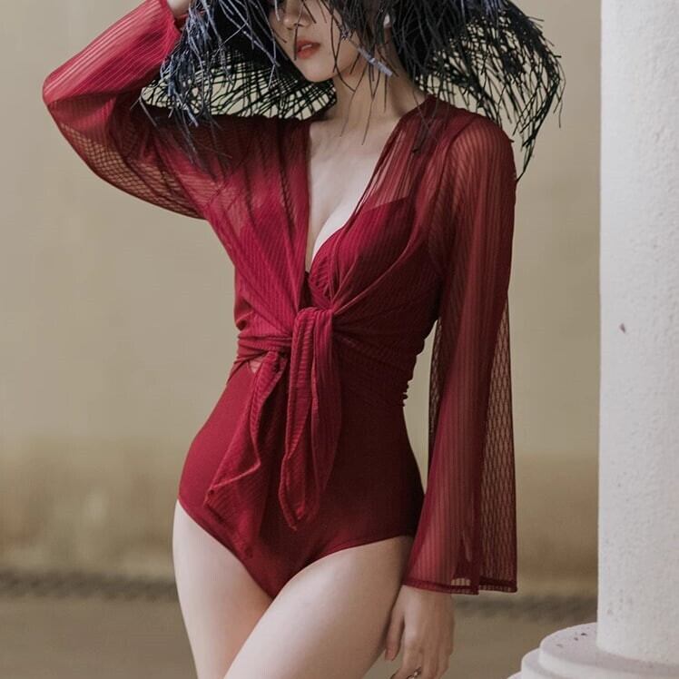 水着 ワンピース スイムウェア シースルー 羽織 クロス 体型カバー 日焼け対策 ハイウエスト ママ リゾート セクシー 細見え 無地 ybh1351