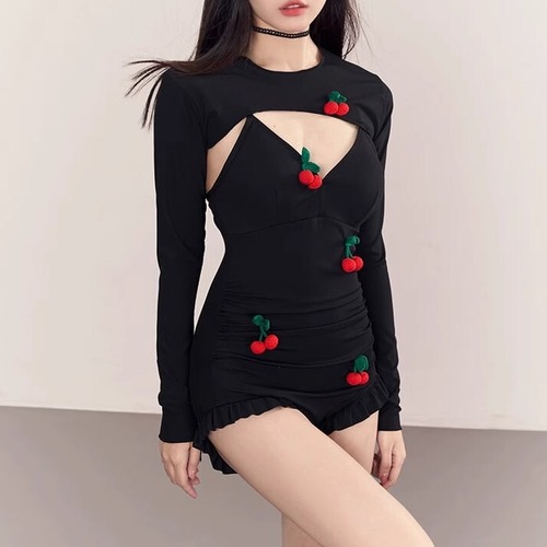 水着 ワンピース チェリー スイムウェア さくらんぼ 体型カバー 日焼け対策 スイムウェア ラッシュガード フリル かわいい レディース ybh1354