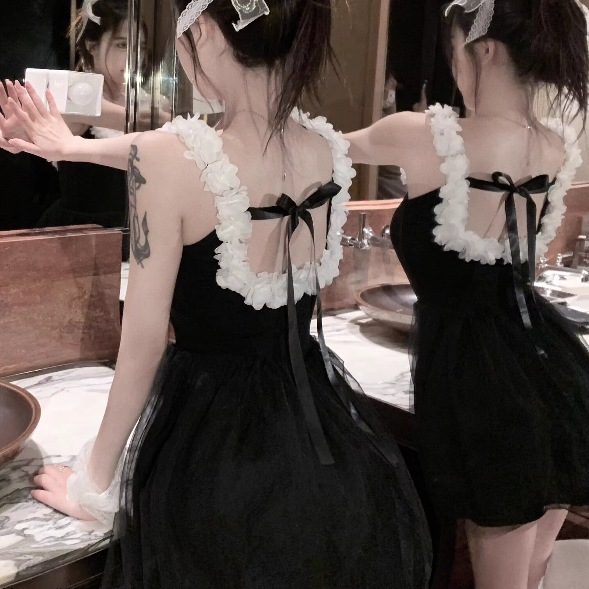 水着 ワンピース 花 ホワイト スカート フラワー バックリボン かわいい シフォン ハイウエスト 体型カバー ママ スイムウェア プール ybh1366