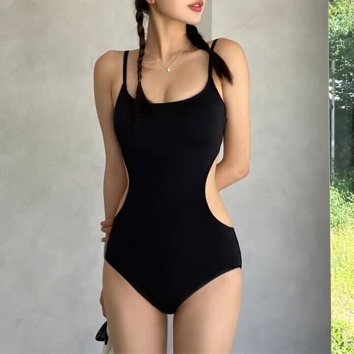 水着 ワンピース セクシー 黒 細見え 体型カバー スイムウェア ノースリーブ 背中魅せ 大人 無地 シンプル プール 海 ママ レディース ybh1372