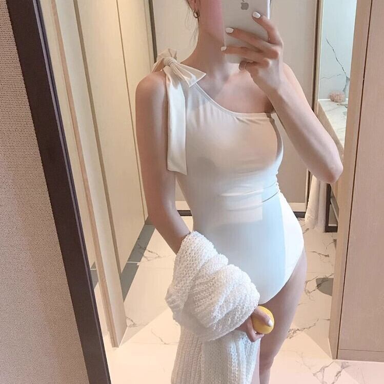 水着 ワンピース ワンショルダー シンプル スイムウェア 肩リボン 体型カバー レディース プール 小胸 ママ かわいい トレンド ybh1374