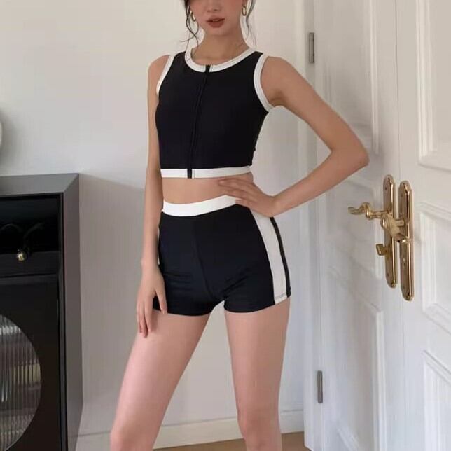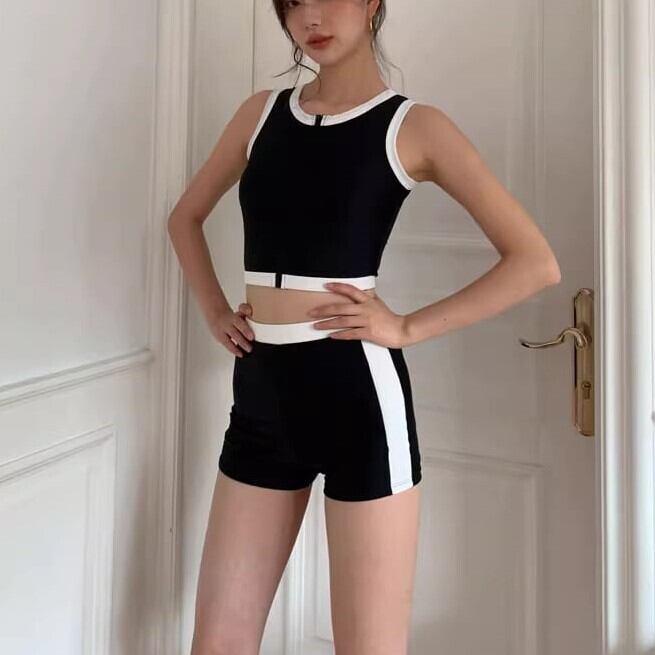 水着 セパレート レディース スポーティ 体型カバー 日焼け対策 プール ショートパンツ 無地 バイカラー 海 ママ 胸カバー スイムウェア シンプル ybh1446