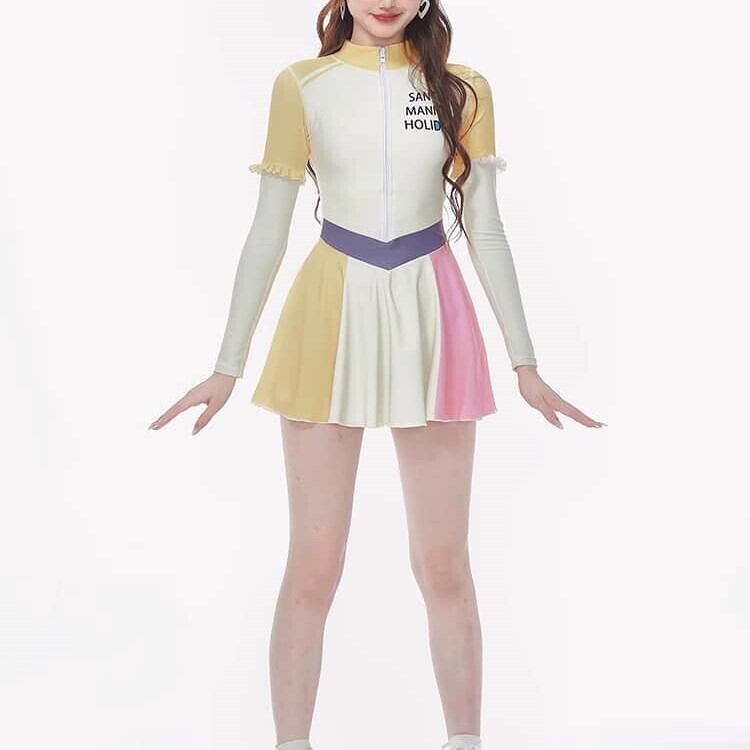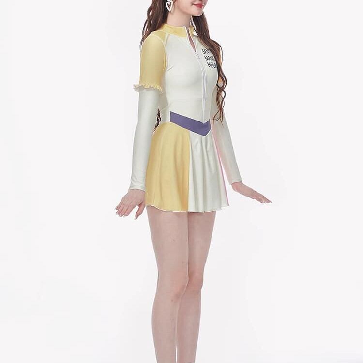 水着 レディース ワンピース 長袖 パステル 日焼け対策 かわいい ママ ラッシュガード スイムウェア スカート サーフィン プール ガーリー ybh1635