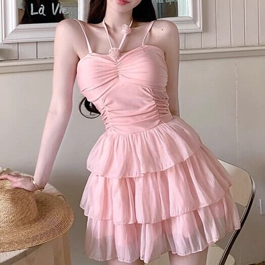 水着 ワンピース シフォン 段スカート ホルターネック ハイウエスト プリンセス ローズ 胸 体型カバー ギャザー レディース スイムウェア バックオープン ybh1660