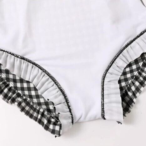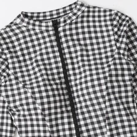 水着 ワンピース チェック 格子 フリル フロント ジップアップ 前開き 長袖 体型カバー 着やせ 紫外線対策 細見え ママ 産後 日よけ 細見え プール 海 ybh1709