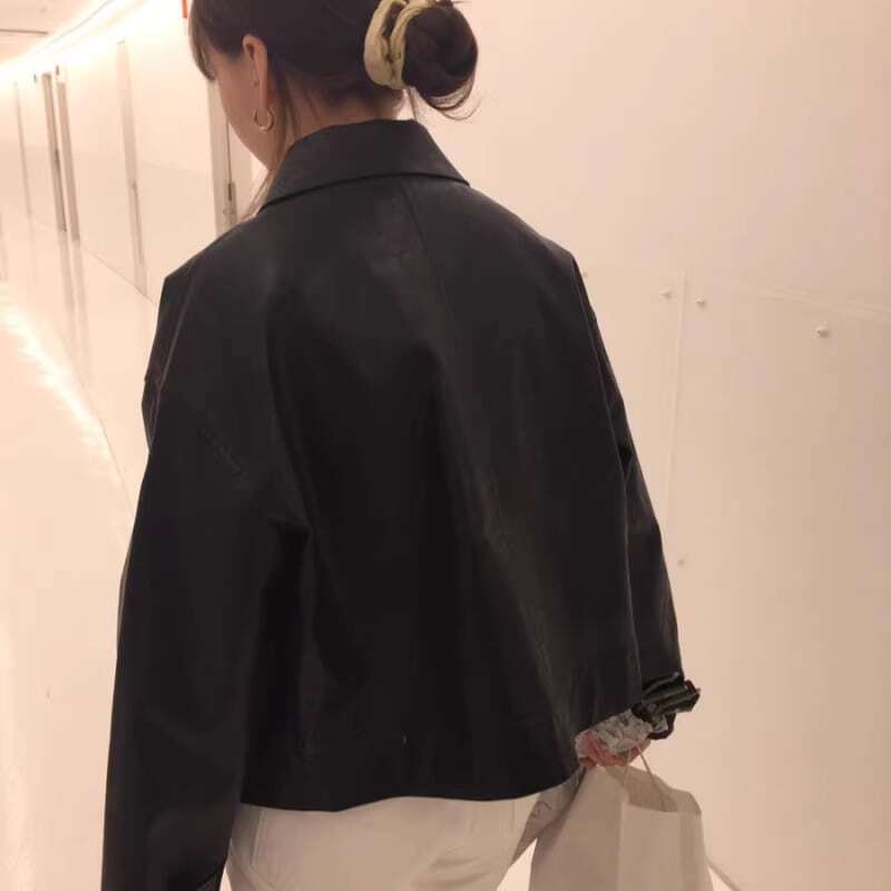 レザー ジャケット レディース ショート丈 長袖 秋 冬 ライダース アウター カジュアル 大人 襟付き コート 黒 ドロップショルダー ybh1807