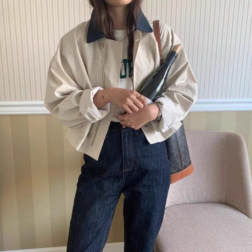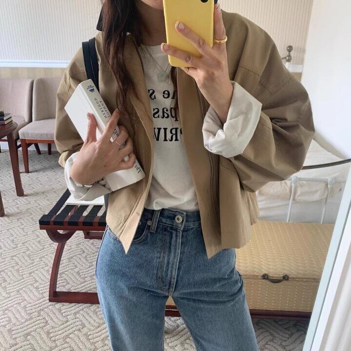 アウター ジャケット 長袖 レディース 襟付き ショート丈 チャック カジュアル 羽織 ナチュラル ドロップショルダー ybh1823