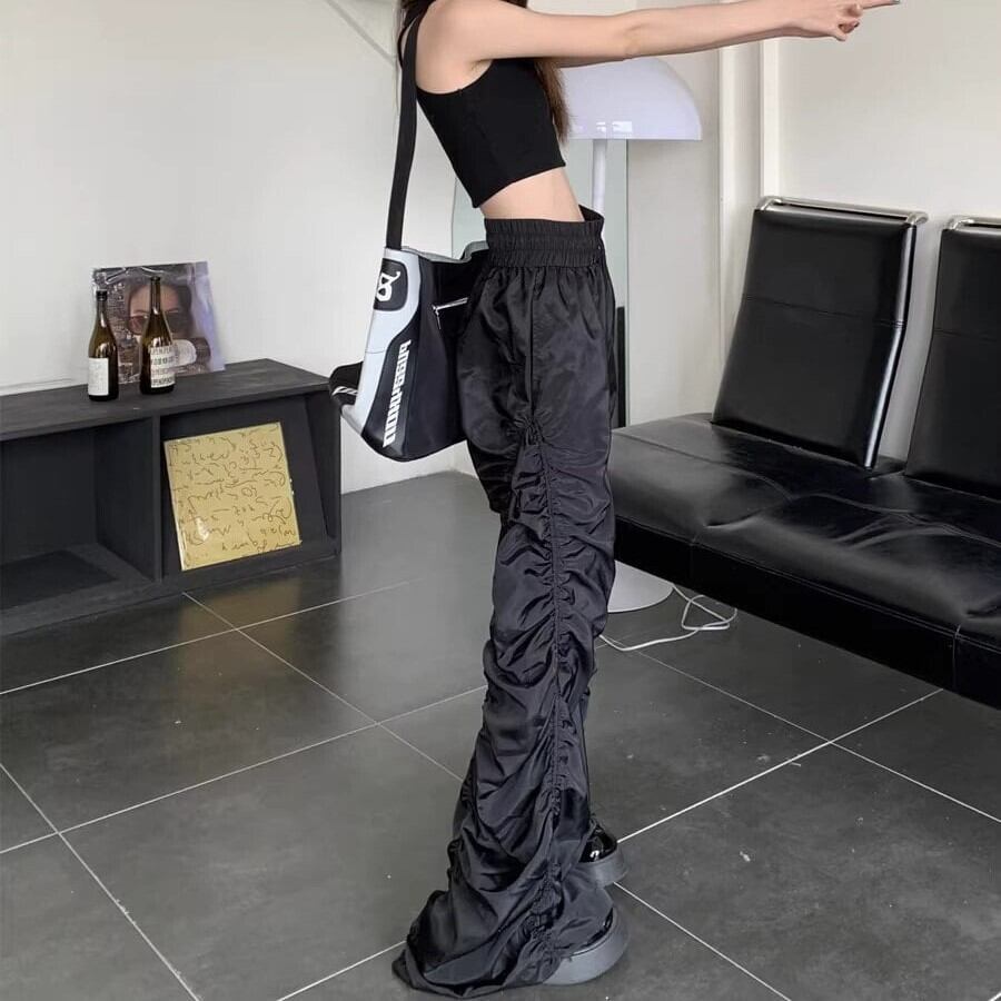 ワイドパンツ レディース フロアレングス ボトムス 黒 ハイウエスト ダンス ゆったり らくちん 脚長効果 足 運動 スポーツ カジュアル 無地 シンプル ybh1908