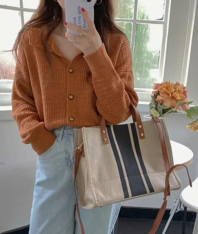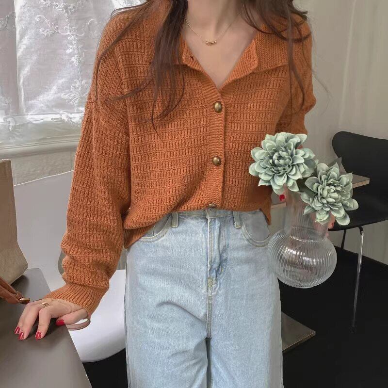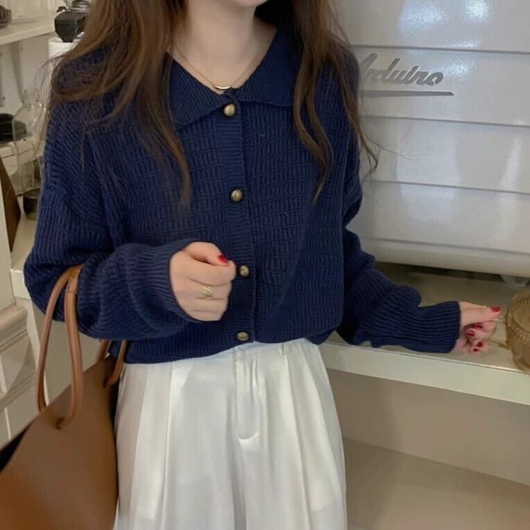 セーター ニット レディース トップス 長袖 襟 カラー ドロップショルダー ゆったり らくちん ボタン カジュアル 秋冬 可愛い 学生 ybh1956