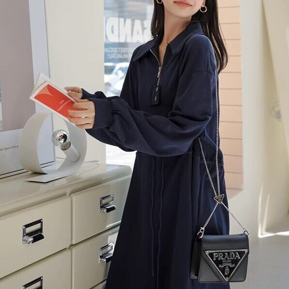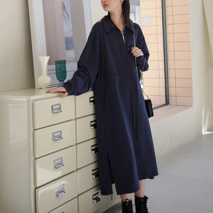 スウェットワンピ ハーフジップ スリット レディース ワンピース 長袖 ドロップショルダー 体型カバー ゆったり ママ 産後 マタニティ— おしゃれ 可愛い ybh1975