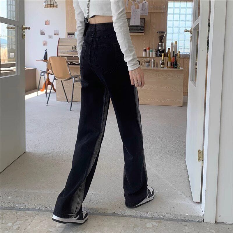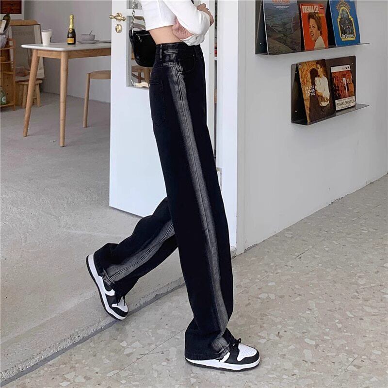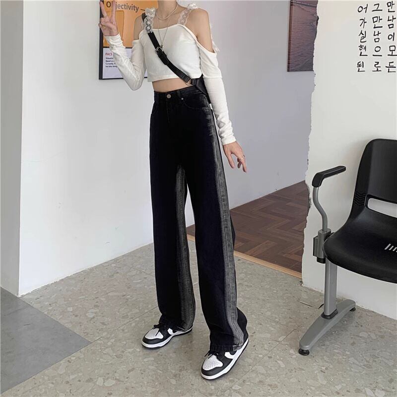 ジーンズ ストレートパンツ Gパン レディース ボトムス ハイウエスト レトロ サイドライン 脚長効果 美脚 オールシーズン おしゃれ トレンド ybh1997