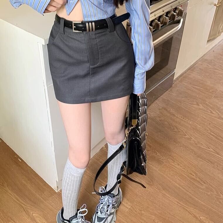 ミニスカート レディース 台形 タイト 無地 シンプル カジュアル きれいめ ボトムス 黒 灰 細見え ハイウエスト セクシー ybh2008