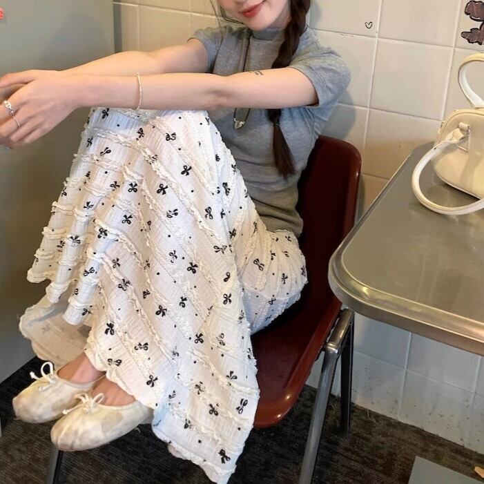 ロングスカート レディース タイト かわいい リボン 総柄 バレエコア フリル ティアード マキシ丈 ボトムス 白 大人 レース ybh2010