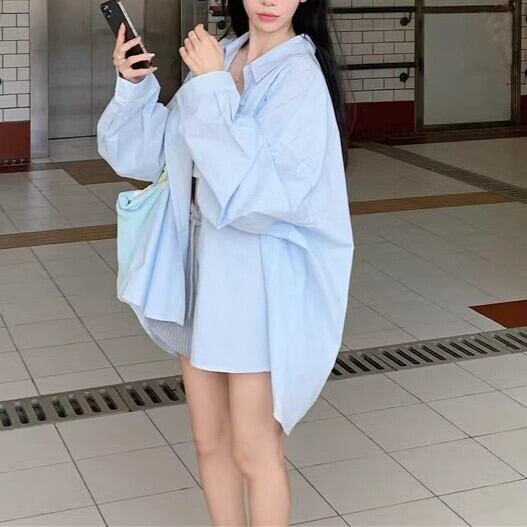 ビッグシャツ レディース トップス シンプル 長袖 日よけ 日焼け対策 ビッグシルエット 細ストライプ 羽織 カジュアル ドロップショルダー ybh2012