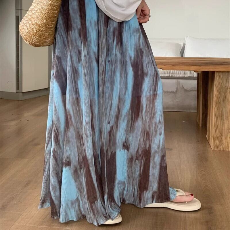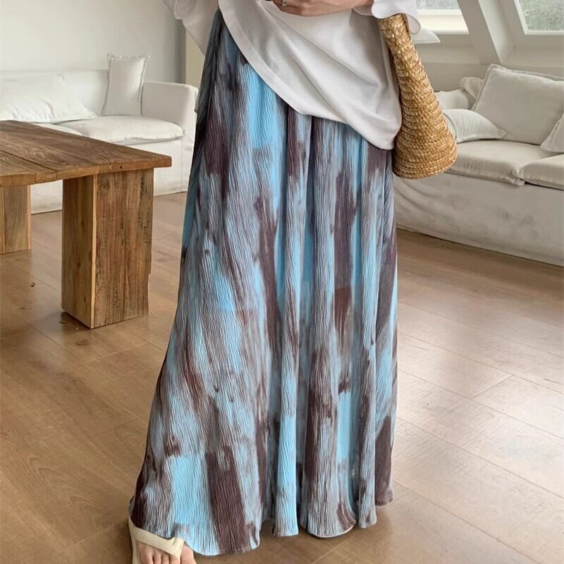 ロングスカート マキシ レディース ボトムス 総柄 タイダイ リゾート フレア Aライン 透け感 絞り ハイウエスト きれいめ 大人 ybh2016