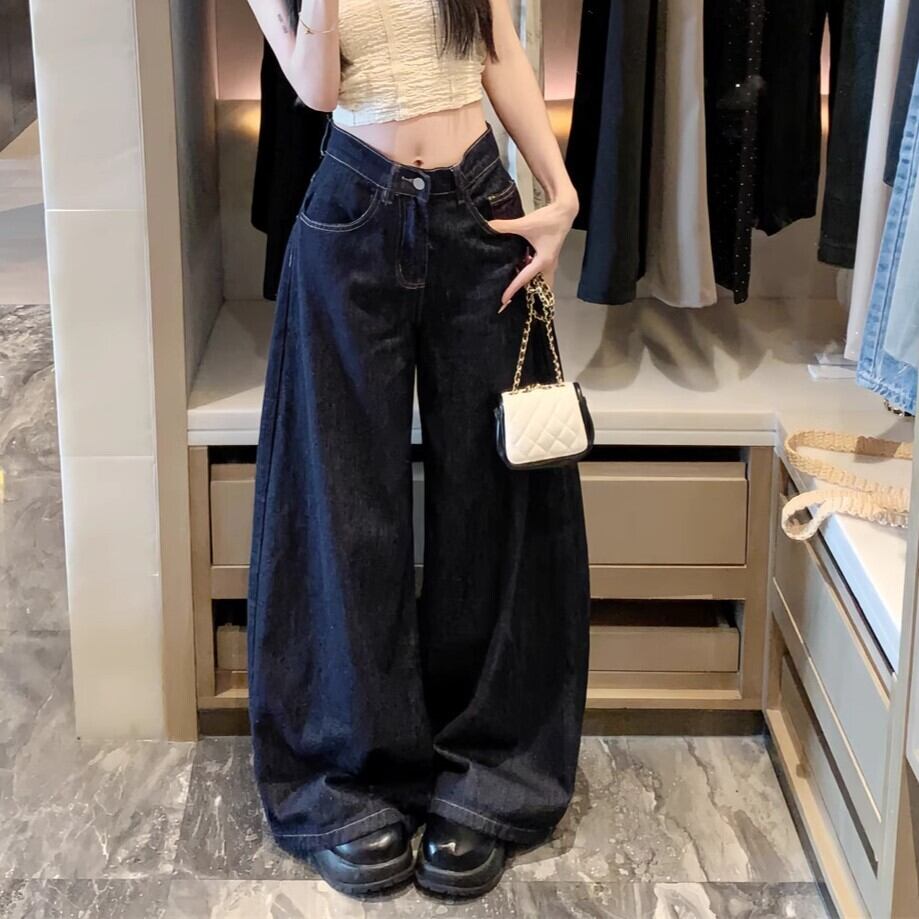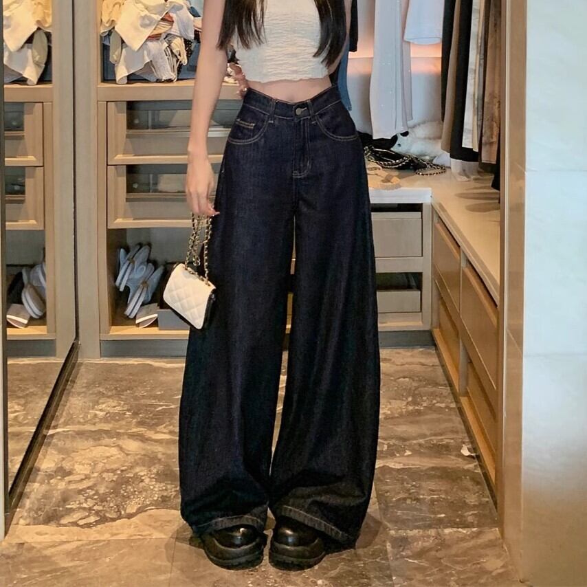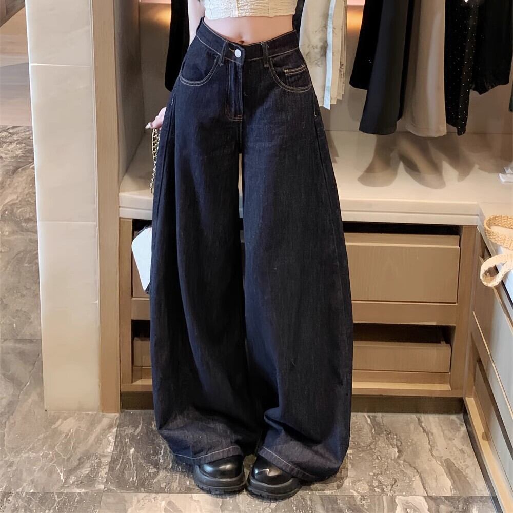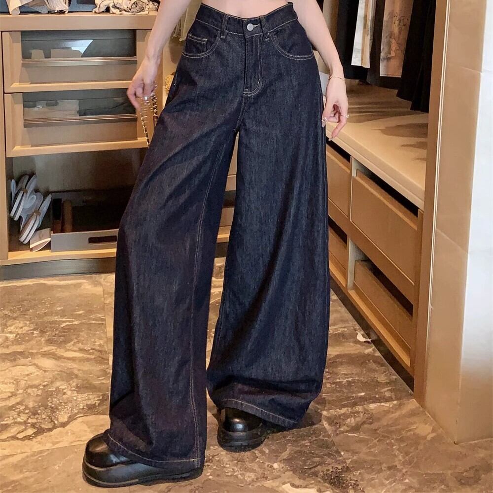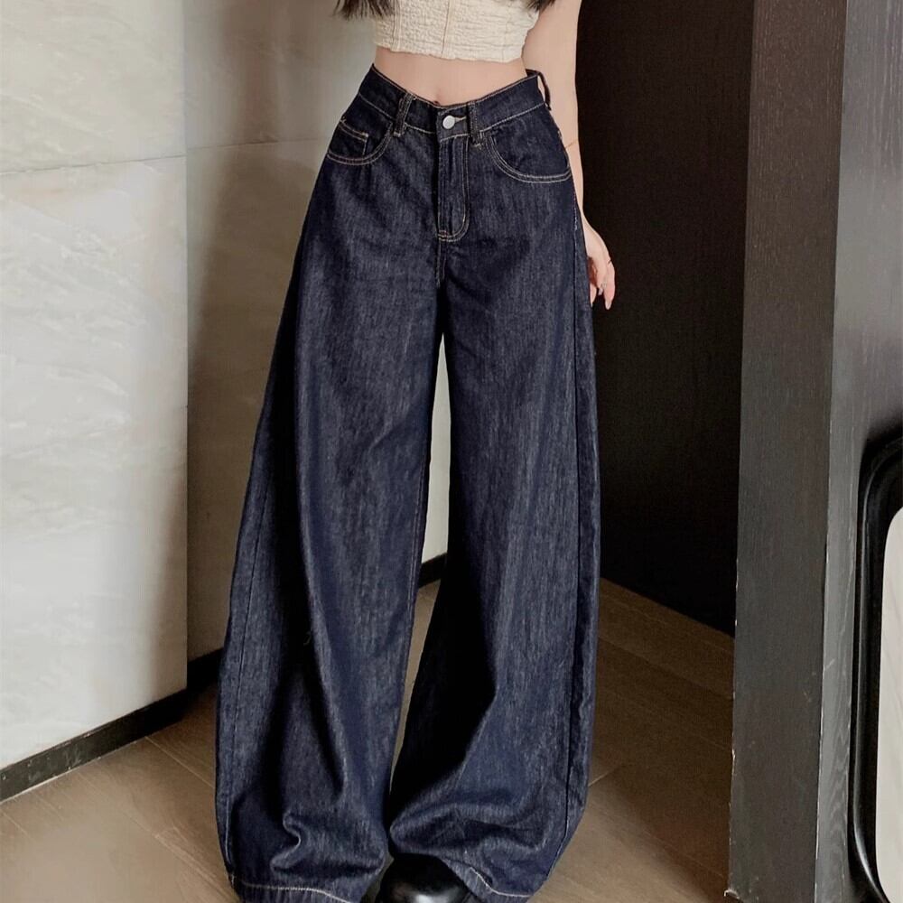 デニム レディース ジーンズ ワイド バギーパンツ カジュアル シンプル ボトムス 細見え ハイウエスト ルーズ ybh2030
