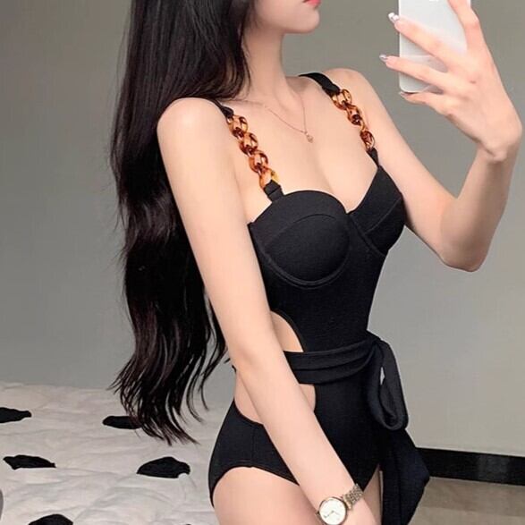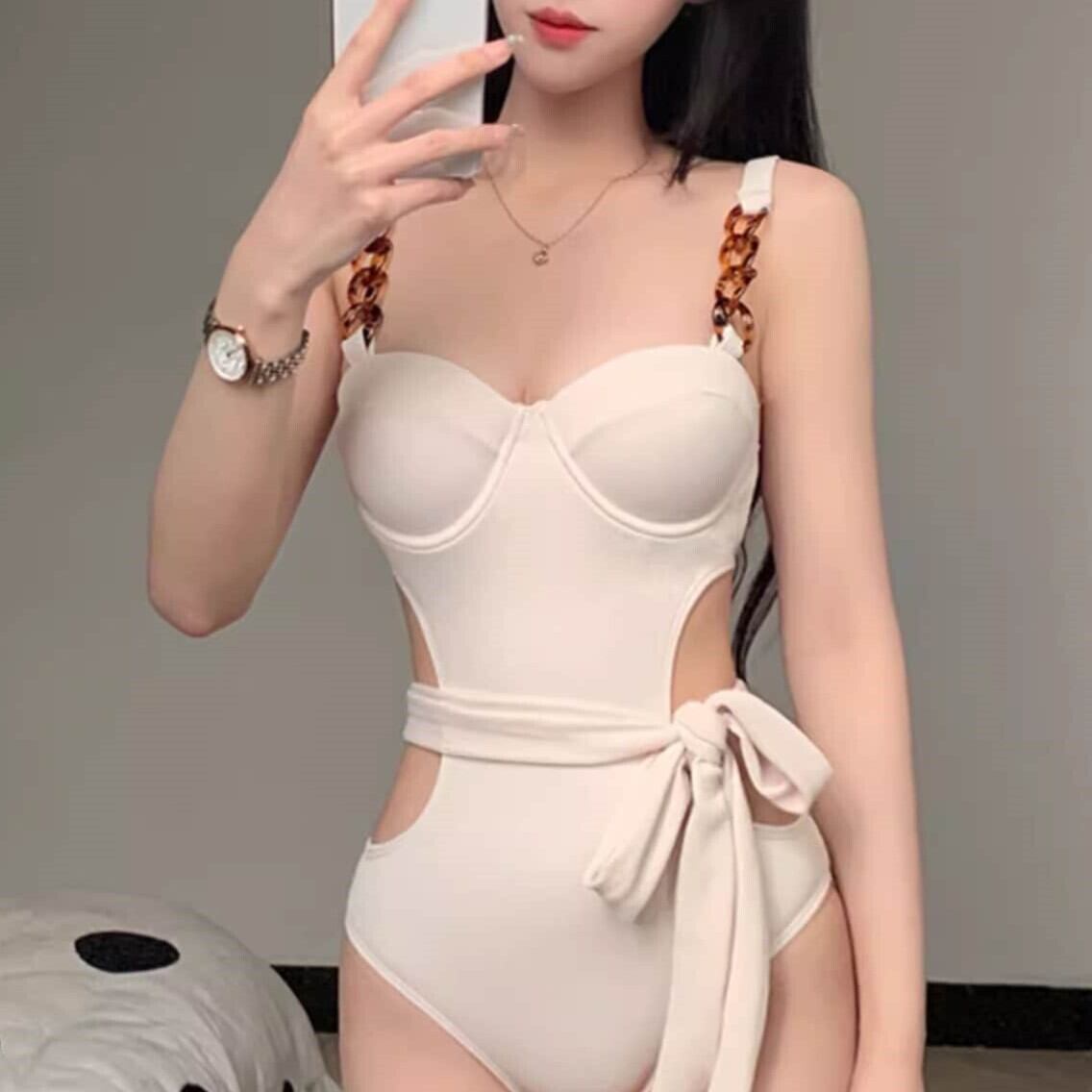 水着 ワンピース スイムウェア ノースリーブ レディース ウエストマーク リボン 大人 体型カバー ハイウエスト きれいめ リゾート シンプル ybh2143