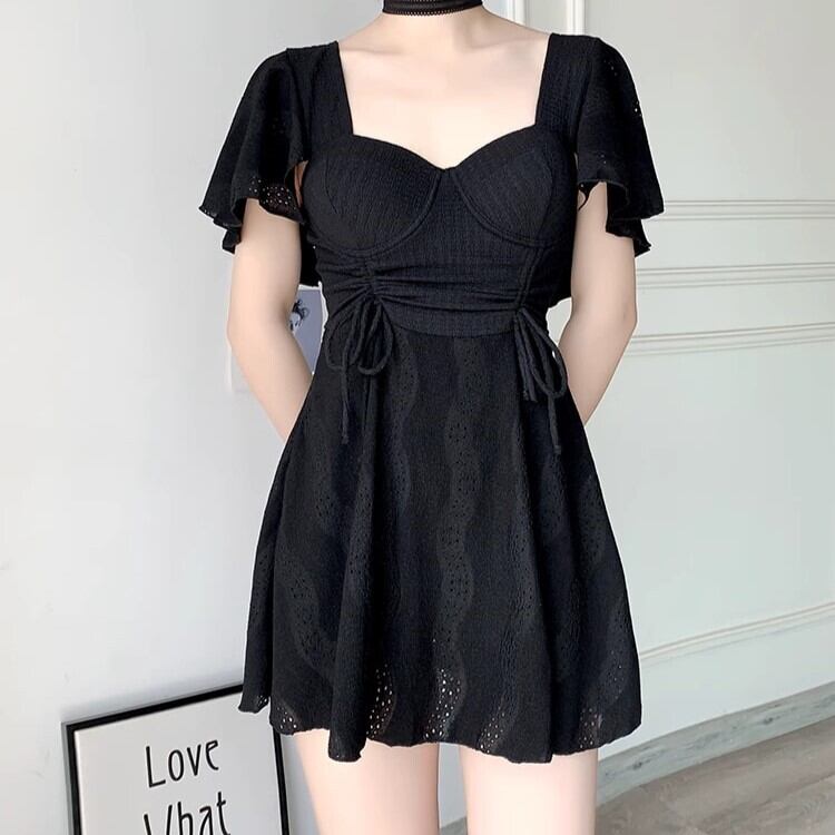 水着 ワンピース レディース スカート 半袖 ハイウエスト かわいい スイムウェア ウエストギャザー ガーリー 体型カバー 日焼け対策 プール ybh2145
