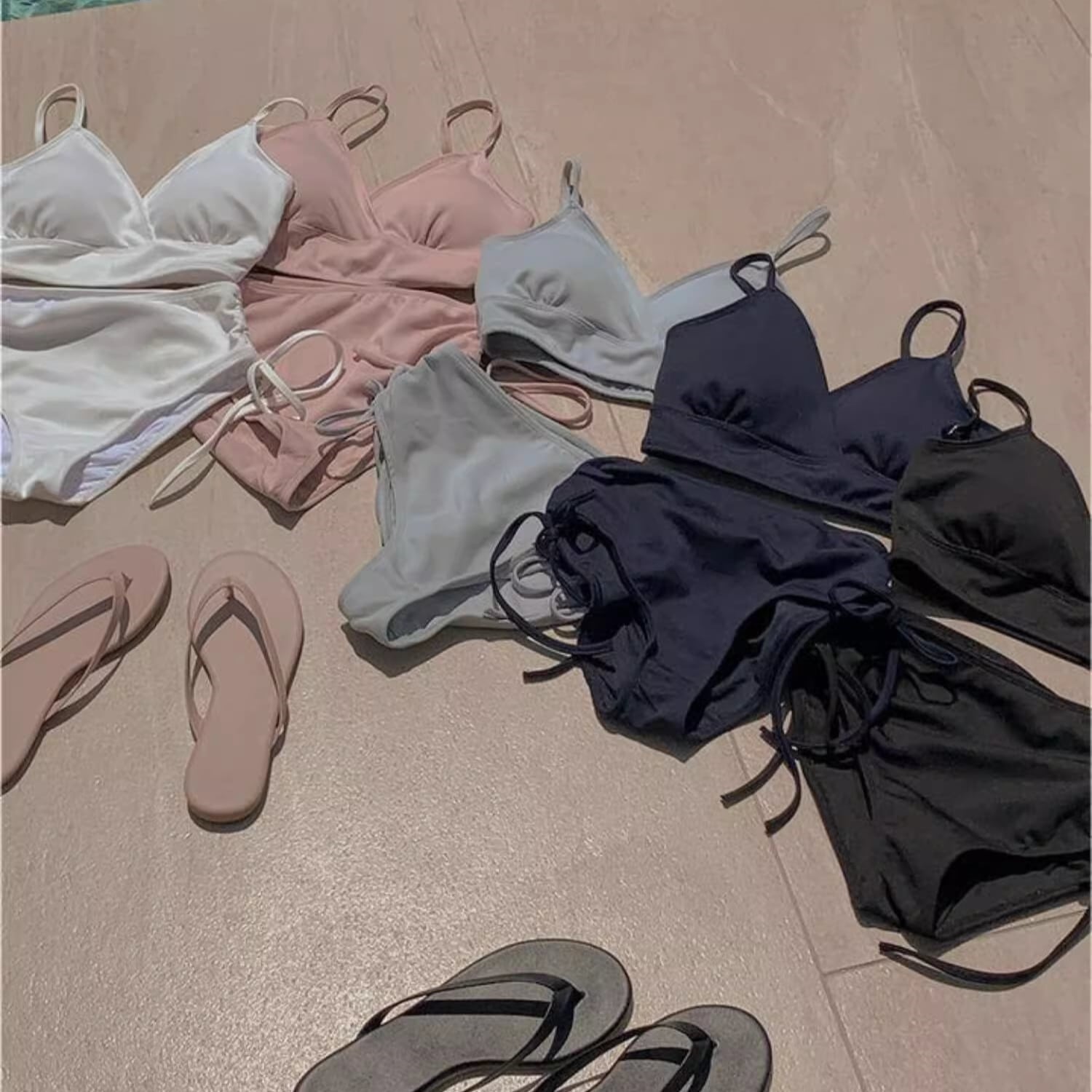 水着 ビキニ レディース シンプル 体型カバー ハイウエスト 無地 リボン ガーリー ノースリーブ かわいい プール 細見え ybh2166