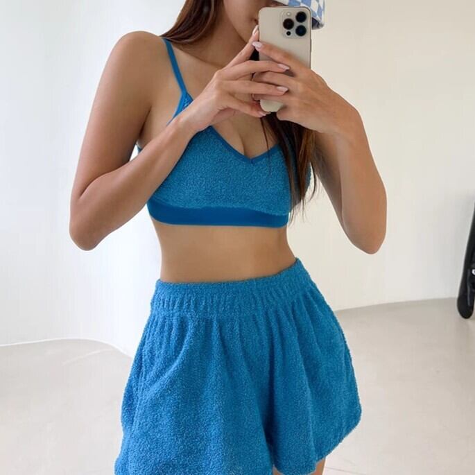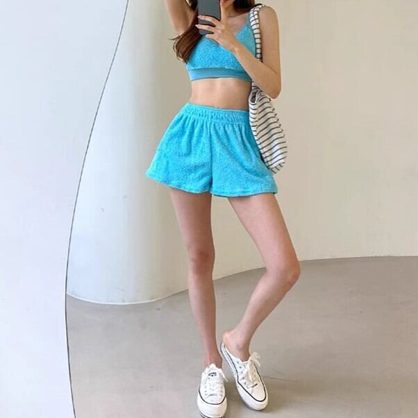 水着レディース ビキニ ショートパンツ スイムウェア カジュアル ハイウエスト タオル地 パイル 海 ママ 体型カバー ybh2167