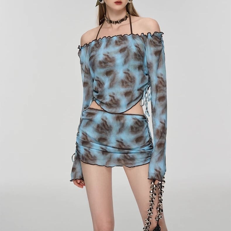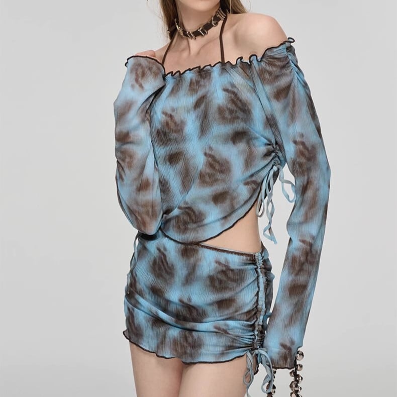 水着 セパレート タイダイ カジュアル 大人 日焼け対策 スイムウェア レディース サイドリボン スカート リゾート 総柄 ybh2192