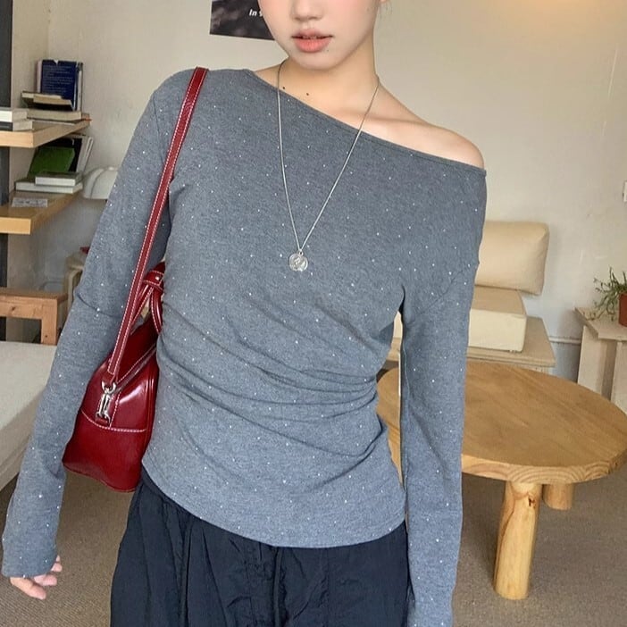 カットソー レディース 長袖 タイト オフショㇽダー ボートネック トップス シンプル 春 秋 サイドギャザー 細見え きれいめ ybh2226