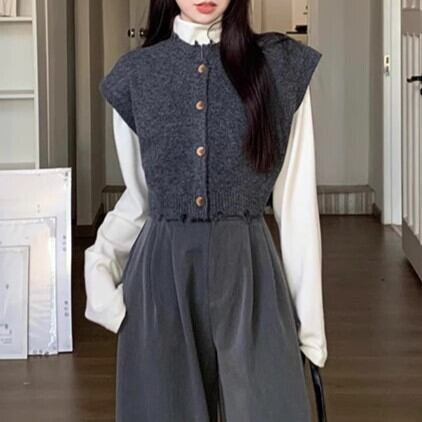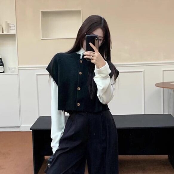 トップス セット商品 ベスト インナー ハイネック きれいめ カジュアル 大人 シンプル ニット レイヤード ラウンドネック セーター ybh2236