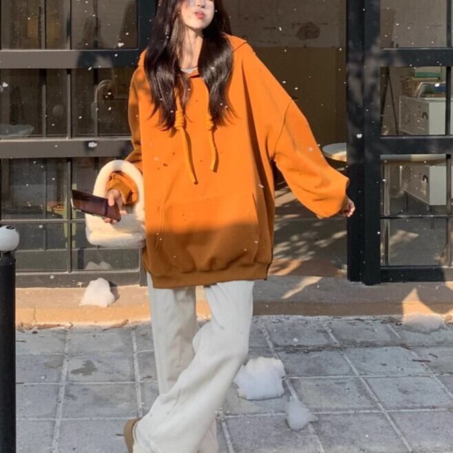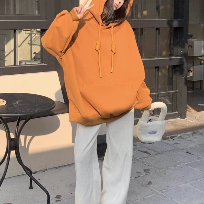 スウェット オーバーサイズ トップス レディース パーカー フード カジュアル ゆったり ドロップショルダー フロントポケット 無地 ybh2238